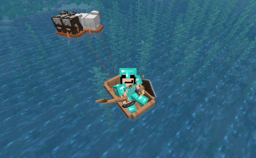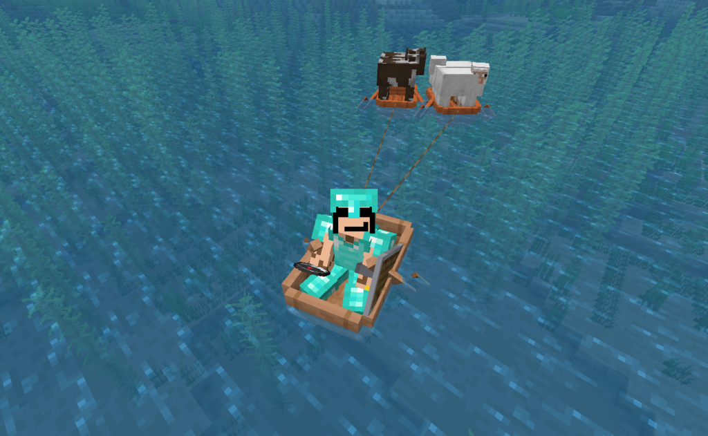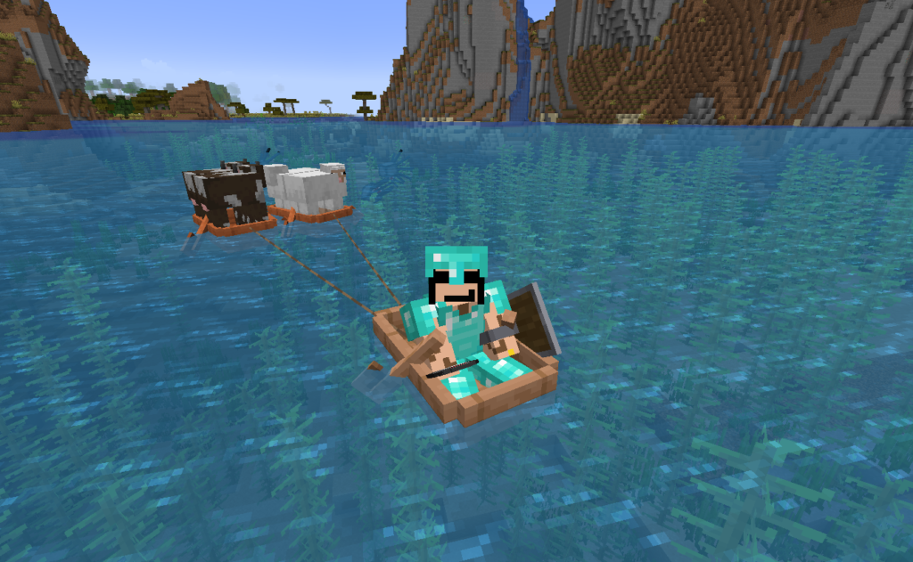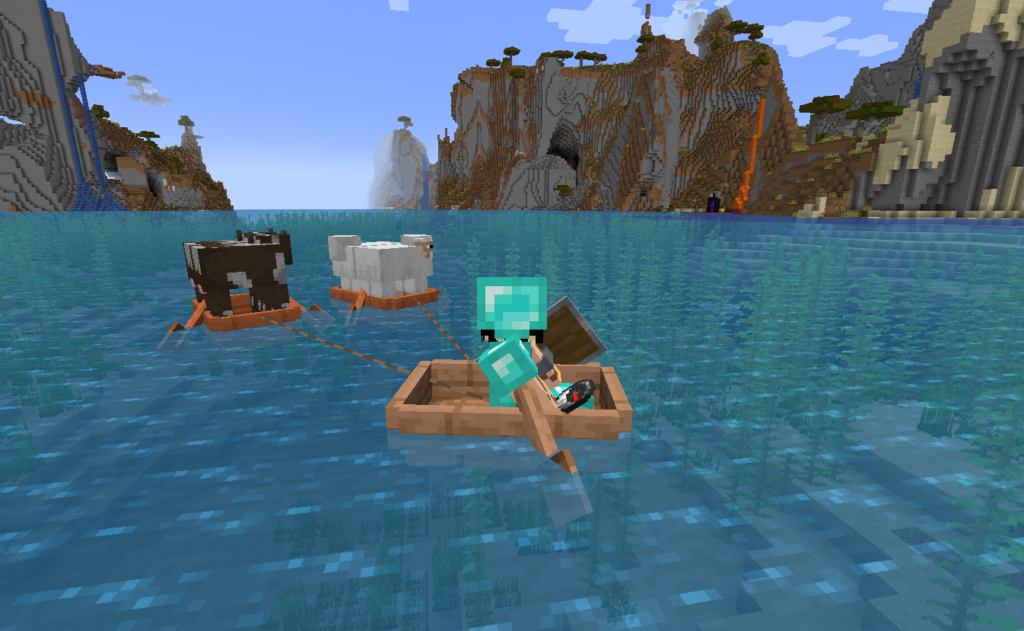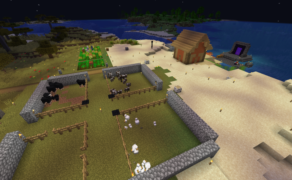 ネザーゲート作って思ったのが「食料なくね?」でしたね、普通はネザーゲートより先に思いつきそうなんですが、、、そんなこんなで牛と羊を〖始まりの祠〗に運搬。